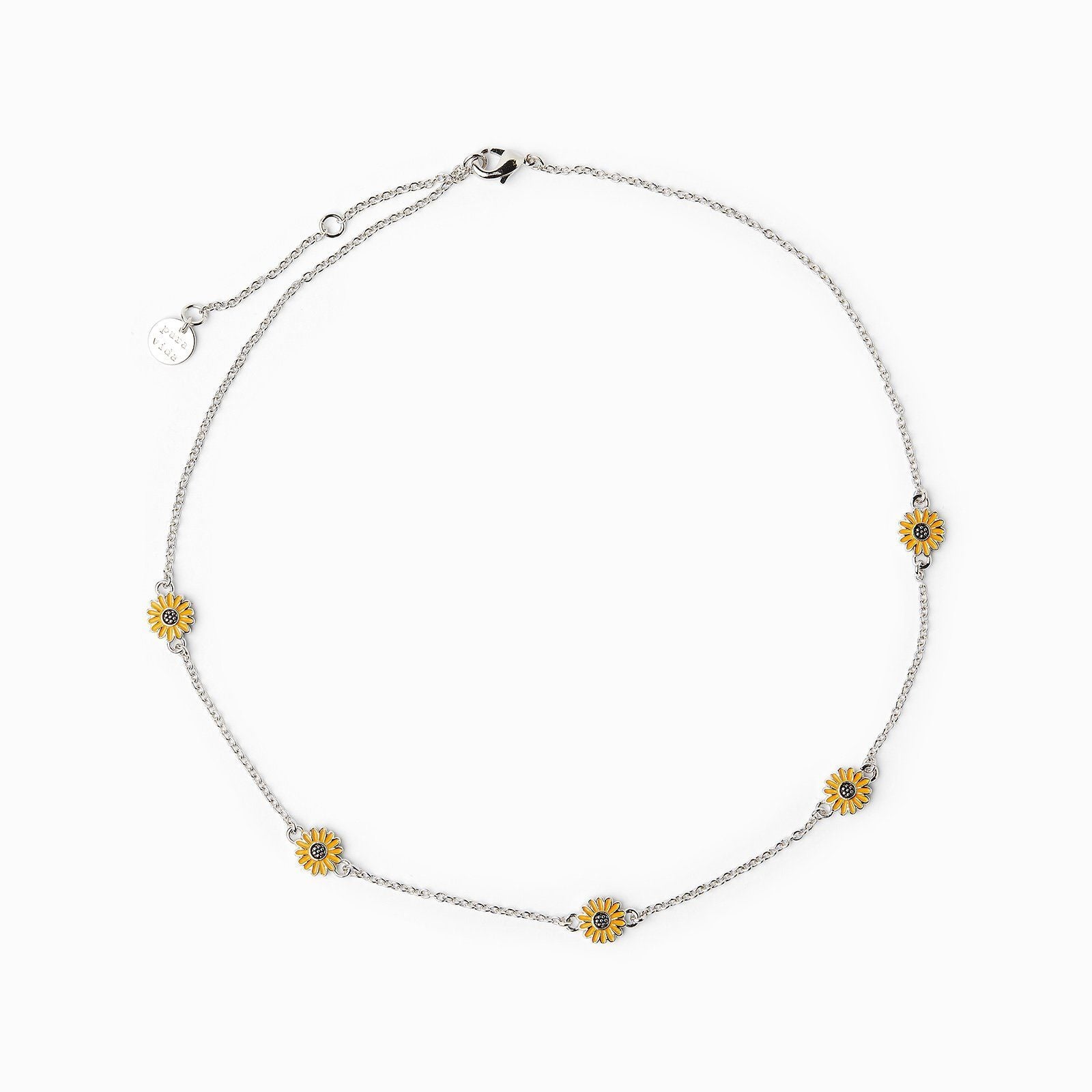 ’Tis the season for florals (and our new Sunflower Choker)!. This delicate and adorable piece is set on a sterling silver chain with a bouquet of enameled sunflower charms sprinkled throughout. The only thing that could make it cuter? Wearing it with the Sunflower Earrings and Ring, too!