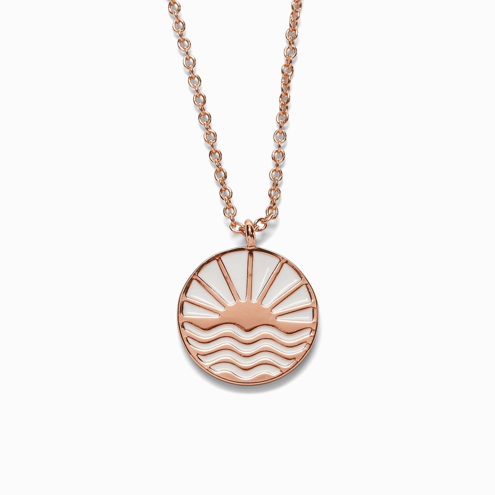 Watching the sun set over the ocean is one of the best things in life (and our Sunrise to Sunset Necklace is another!). Set on a delicate rose gold chain, this gorgeous medallion design features an enameled charm depicting a summer sunset on one side. Flip the charm around for even more good vibes (and a totally new look!).