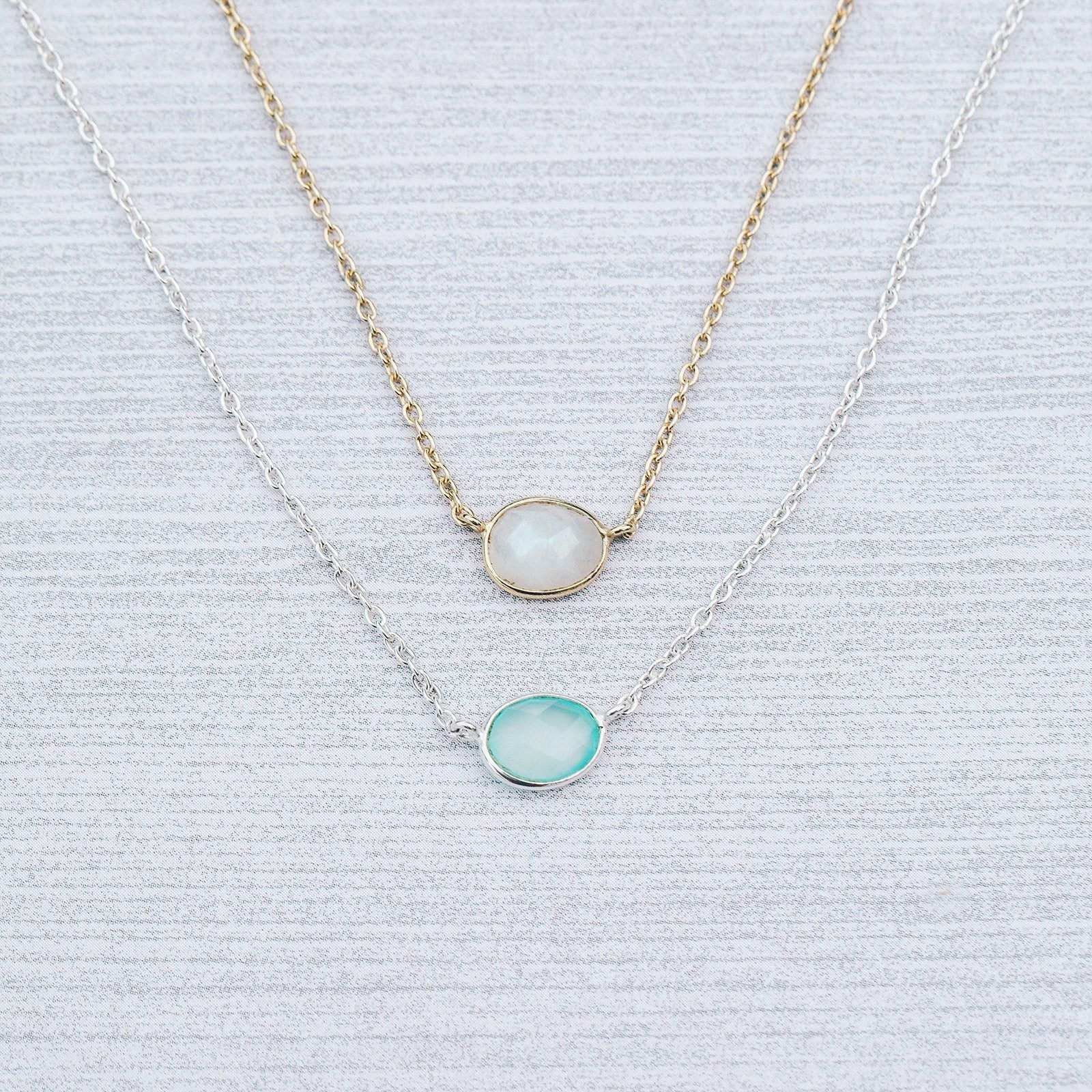 Elevate your everyday look with our Teardrop Stone Necklace. Set on a simple silver or gold chain, this necklace features an oval-shaped gemstone pendant in two varieties: chalcedony to promote peace and generosity or moonstone to help you go with the flow. Each gemstone is 100% genuine and unique (meaning no two look alike!).