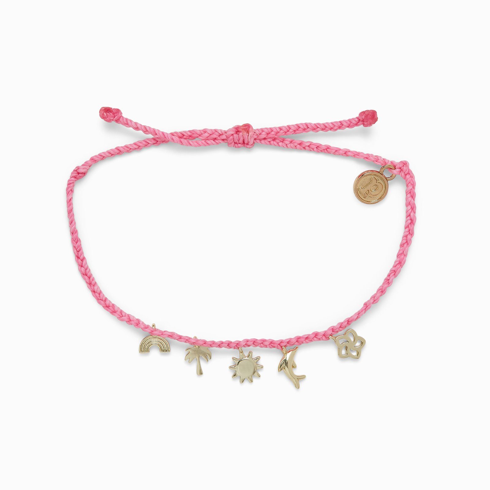 Make every day a vacay with our Tropical Mini Charm Bracelet! Available in two color combos—aqua with silver and pink with gold—this bitty braid design features five dangling charms that are perfect for a beach day and every summer getaway.
